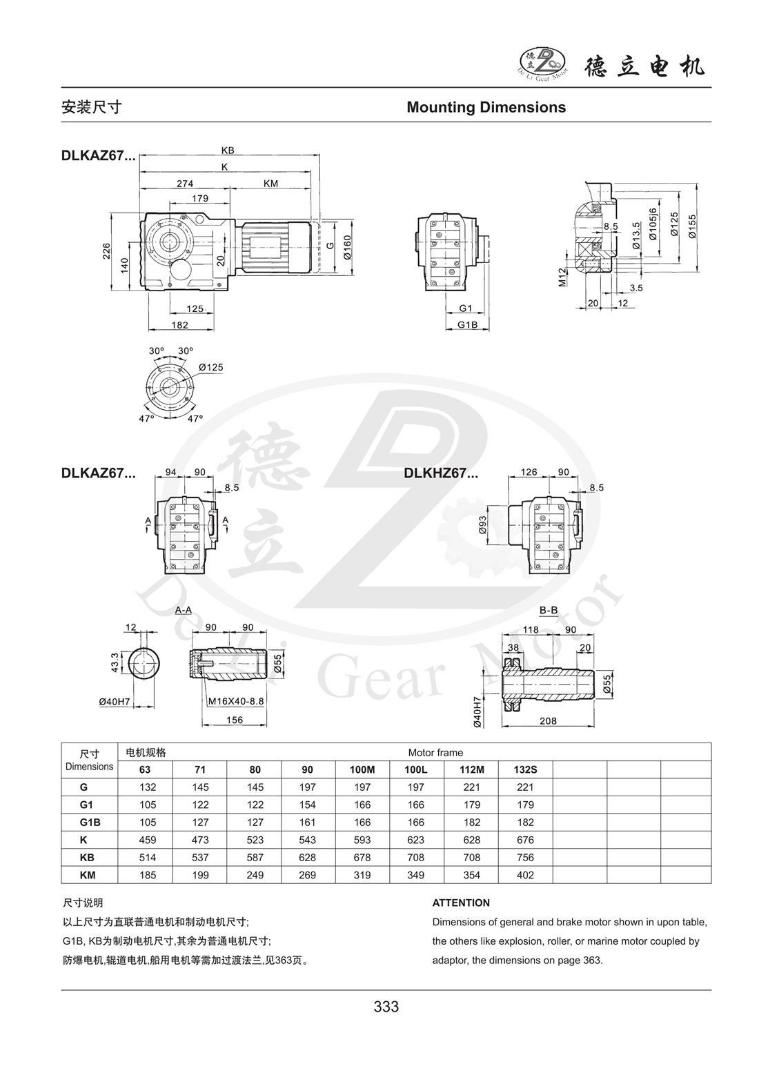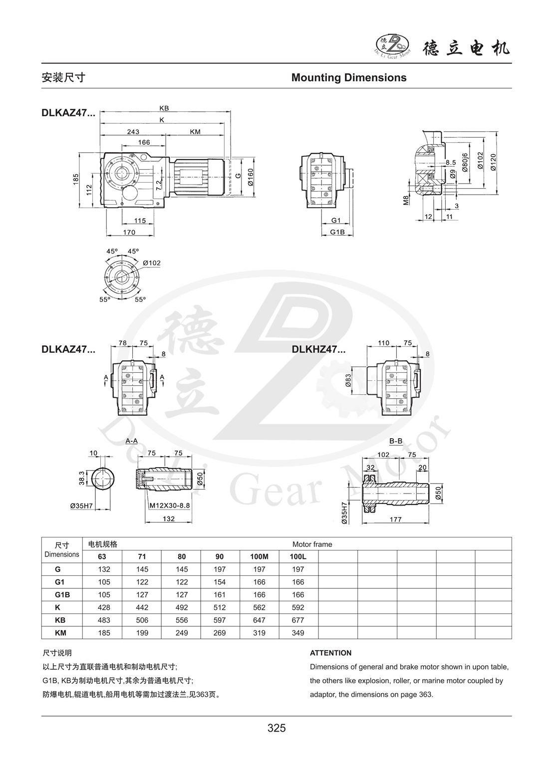 K系列斜齒輪錐齒輪減速電機的輸出方式主要有空心軸輸出或實心軸輸出這兩種,平均效率為94%,使用該產品注意只能在-40℃-50℃的溫度下使用,否則會影響正常使用,還需要注意海拔高度不能超過1000米,輸入轉速不大于是1800轉/分,齒輪最高圓周速度不超過22米/秒等等,注意上述使用條件,才能保證我們安全使用。
